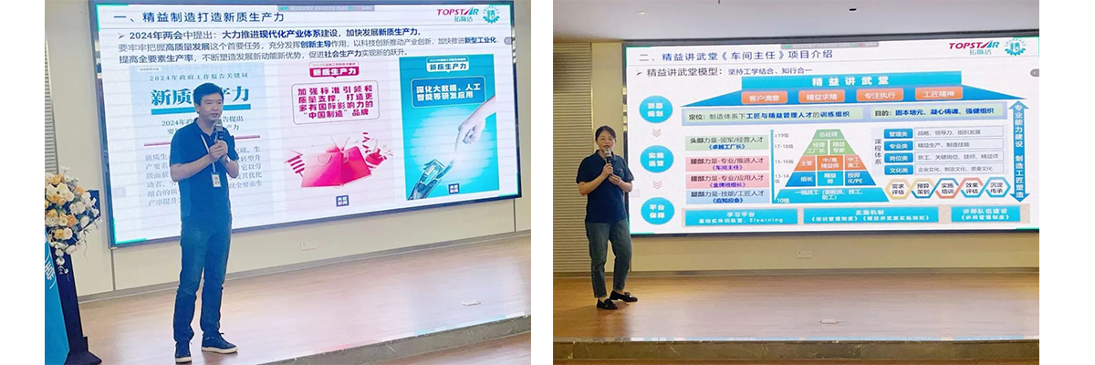 培訓開始之前首先進行了開營儀式,營造濃厚學習氛圍,明確學習目標。典禮上,講武堂盧主任解讀2024最新的政策報告,同時結合公司智能裝備的定位及精益制造的戰略作了全面系統的介紹;宣傳委員明確了精益講武堂是制造體系下工匠與精益管理人才訓練組織的定位和堅持工學結合、知行合一的應用模式,講解了《車間主任》訓練營實施計劃和規則。