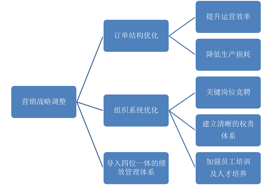 3、對營銷戰(zhàn)略進(jìn)行梳理,并配套以訂單結(jié)構(gòu)優(yōu)化、組織系統(tǒng)優(yōu)化、績效體系導(dǎo)入,最終實(shí)現(xiàn)戰(zhàn)略營銷破局。