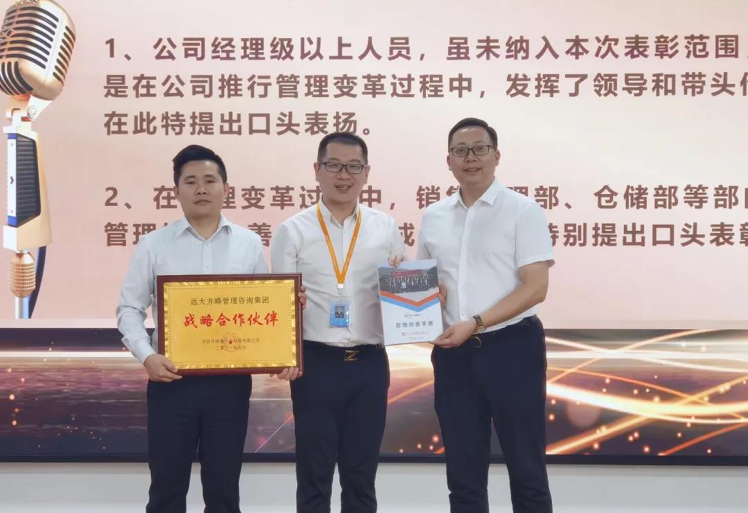 神通天下領導對集成運營改善成果表示肯定,會上針對表現(xiàn)突出的個人和團隊進行了表彰,授予遠大方略“戰(zhàn)略合作伙伴”的榮譽稱號,這是對遠大方略項目組的認可,也是遠大方略實力和價值的體現(xiàn)。