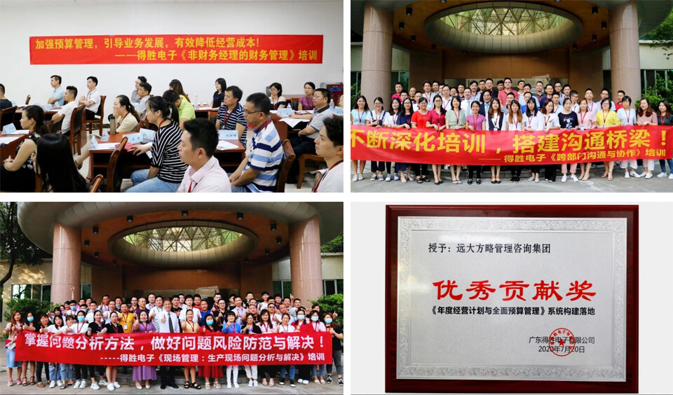 得勝電子與遠大方略合作咨詢項目2期,并持續(xù)開展定制化專題培訓(xùn)。沉淀了一套人才培養(yǎng)復(fù)制模式,打造了經(jīng)營管理核心團隊(8名),為企業(yè)高速發(fā)展奠定了人才基礎(chǔ);沉淀了一套年度經(jīng)營目標實現(xiàn)的經(jīng)營管理系統(tǒng),大大地提升了資金周轉(zhuǎn)率和庫存周轉(zhuǎn)率,助力企業(yè)實現(xiàn)了營業(yè)額和利潤的雙增長。