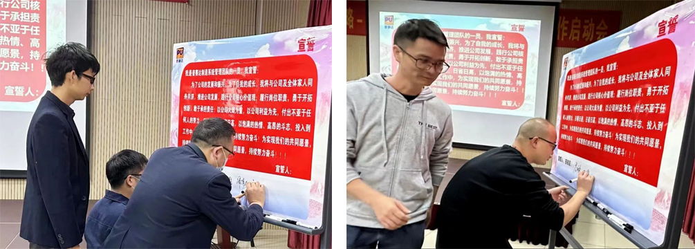 為了堅定全員參與變革的決心,孫總和大家簽下誓言并宣誓,鼓舞大家持續(xù)提升能力,在助推公司發(fā)展的同時實現(xiàn)自我價值。
