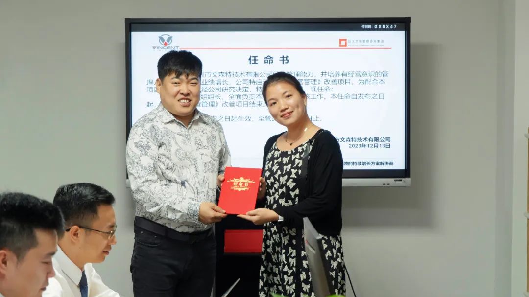 會上,吳總為項目老師頒發(fā)授權書,授予項目老師項目管理權利,同時為公司項目團隊成員頒發(fā)任命書,明確職責,強化責任,確保項目的有效落地。