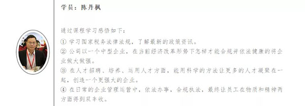通過鄧雨薇老師的授課講解,學(xué)員們掌握了社保稅收的新政策對比變化,政策與法律對企業(yè)及個人的影響,讓學(xué)員回到企業(yè)設(shè)計出有效的落地方案。