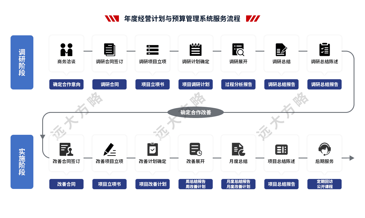 遠大方略始終遵循不了解不理解企業的前提下絕不輕易下結論,正式制定改善方案前必須深入到業務一線了解和理解企業的運營情況。
